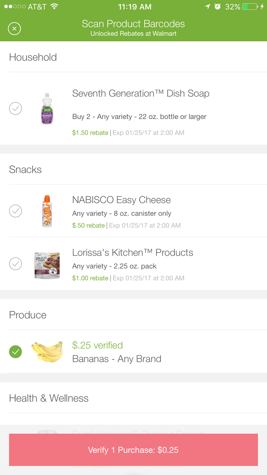 4. I then have to scan the product barcode(s) of the matching item with the Ibotta app and/or scan the receipt where I purchased from if it doesn’t have a barcode. Once the item is verified, it goes off to be analyzed to release the rebate(s).