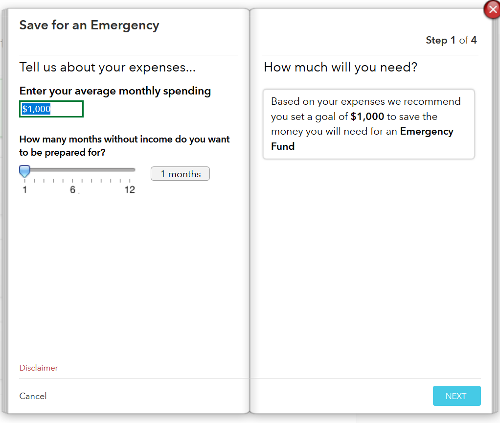 Create Emergency Fund Goal for $1000